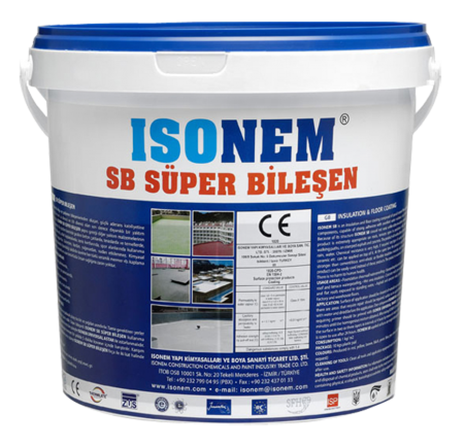 SB SÜPER BİLEŞEN, Özel mineral dolgu ve polymer bileşenlerinden oluşan, güçlü aderans kabiliyetine sahip, mükemmel su direnci ve UV direnci olan son derece dayanıklı bir yalıtım kaplamasıdır. ISONEM SB SÜPER BİLEŞEN yapısı gereği diğer yalıtım malzemelerinin aksine aşınmaz. Bu yüzden üzerinde gezilen beton çatılarda, teraslarda, yürüme yollarında, asfalt kaplamalarda kullanımına son derece uygundur. Güneşten, kardan, yağmurdan, sudan etkilenmez.İstenildiği takdirde üzerine her türlü seramik mermer vb. kaplama yapılabilir. Ekonomik ve uzun ömürlüdür. İnsan sağlığına zararı yoktur.