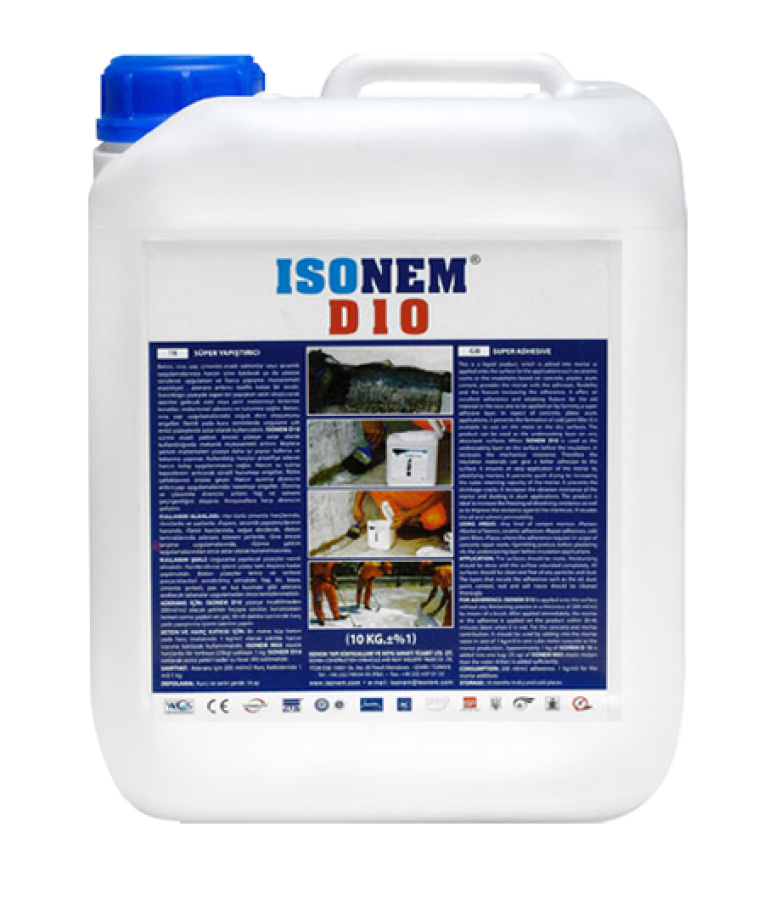 ISONEM D10 LATEX sürme esaslı yalıtım öncesi yüzeye astar olarak kullanıldığında mekanik mukavemeti arttırır. Böylece yalıtım malzemeleri yüzeye daha iyi yapışır, kalkma ve kabarma yapmaz. Kullanıldığı harçları plastifiye ederek harcın kolay uygulanmasını sağlar. Harcın su tutma kapasitesini arttırarak süratli kurumayı engeller. Rötre çatlaklarının önüne geçer. Harcın aşınma direncini arttırır, şap uygulamalarında tozumayı engeller. Donma ve çözünme direncini arttırır. Yağ ve solvent geçirgenliğini düşürür. Kimyasallara karşı direncini geliştirir. ISONEM D 10 LATEX su bazlı, akrilik emülsiyon esaslı, tek komponenlidir.