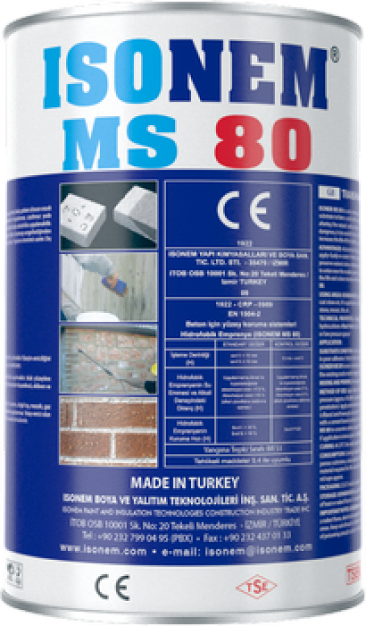 | MS 80 ŞEFFAF SU GEÇİRİMSİZLİK SIVISI, Uygulandığı dış cephelerdeki emici yüzeylerde film tabakası oluşturmadan görüntüyü ve dokuyu bozmadan doğallığını koruyarak su geçirimsiz hale getiren siloxan esaslı şeffaf bir yalıtım ürünüdür. Yüzeyde film tabakası oluşturmadığından binanın ya da taşın nefes alma kapasitesini engellemez, azaltmaz ya da görüntüsünü bozmaz. Kararma ve kabartma yapmaz. Alkali dayanımı çok yüksektir ve bu nedenle yeni veya eski betonlarda rahatlıkla uygulanabilir. Uygulandığı pres tuğla, doğal, yapay taş veya sıvaların harcından dolayı oluşan tuz kusmalarını ve lekelenmelerini önler. Islanmayı engellediğinden dolayı da binaların ısı izolasyon değerinin kaybolmasını önler. Yağmurun tahribatından ve korozyonundan binayı korur. Yapıların ömrünü uzatır. · Şeffaftır, film tabakası oluşturmaz, doğal görüntüyü bozmaz, vernik gibi parlak görüntü vermez. · Derinlemesine işler, yüksek penetrasyon özelliğine sahiptir. · Yüksek alkali dayanımı vardır. · Yapıların nefes almasını engellemez. · Uzun ömürlü ve ekonomiktir. · Yağmurdan oluşan kirlenme,kararma,ve renk bozukluklarını önler. Don hasarları ve tuz kusmalarından korur. |