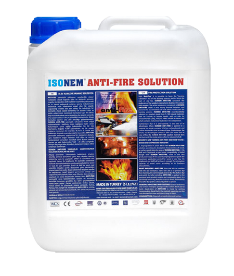 | ISONEM ANTI-FIRE SOLUTION yanmazlık solüsyonu uygulandığı yüzeyi moleküller olarak kapsüle eder ve oksijenle temasını engeller. İçeriğindeki aktif maddeler sayesinde yanma reaksiyonunu başlatacak ısıya ulaşmasına engel olur. Bu sayede uygulandığı madde asla alev almaz. Bu ürünümüz bir kontrplak ahşap kapıda denenmiştir. Ön yüzüne 1500°C ısı tatbik edilen 14mm kalınlıktaki kontrplak kapı 40 dakika boyunca direkt aleve maruz bırakılmış, bu sürenin sonunda arka yüzün sadece 120°C ye yükseldiği saptanmıştır. Ahşap kontrplak kapının asla alev almadığı gözlemlenmiştir. ISONEM ANTI-FIRE yanmazlık solüsyonu 0 doğal malzemelerden üretilmiş, insan sağlığına hiçbir zararı bulunmayan, doğada 0 çözünebilen, hiçbir yasaklı malzeme içermeyen bir üründür. Yanmazlık solüsyonu uygulanmış bir maddenin dumanı, aynı maddenin doğal halinden %50 daha az oranda karbondioksit ve karbon monoksit içerir. Bunun yanında duman ve azot bakımından %20 - 25 daha zengindir. Dolayısı ile yüzey alev almazken dumanının boğucu etkisi yarı yarıya azaltılmıştır. Su bazlı, tek komponentlıdır. ISONEM ANTI-FIRE YANMAZLIK SOLÜSYONUNU BENZERSİZ KILAN NEDİR? ISONEM ANTI-FIRE yanmazlık solüsyonu bir alev geciktirici değildir, tam bir alev almazlık sağlar. Alev geciktirici uygulanmış madde (tekstil, ahşap vb.) aleve tutulduğunda yanar, alev kesildiğinde ise söner. Yani asıl olan maddenin alev kaynağından uzaklaştırıldığında yanmamasıdır. Bu bir yangının yayılmasını yavaşlatabilir ancak asla önlemez. ISONEM ANTI-FIRE yanmazlık solüsyonu uygulanmış madde alev almaz. TSE TEST VE MUAYENE RAPARUNA GÖRE; TS EN ISO 1716:2010/OCAK 2011 SAYILI TÜRK STANDARDINA GÖRE MUAYENE VE DENEYLER YAPILMIŞTIR. TS EN ISO 1182 KONULU 02.02012 TARİH/139913 NOLU MUYANE VE DENEY SONUCUNDA EN 13501-1/OCAK ÇİZELGE-1 A1 SINIFI KRİTERLERİNE UYGUNDUR RAPORU VERİLMİŞTİR. YÜKSEK TEKNOLOJİ ENSTİTÜSÜ BİYOLOJİ BÖLÜMÜ ARAŞTIRMA LABORATUVARI TEST SONUÇLARI; SIVININ UYGULANDIĞI MATERYAL: Kağıt, sünger, tahta, kumaş, pamuk. SONUÇ : YANMA YOK SONUÇ : : İlgili materyallerde kararmanın dışında hiçbir yanma, parlama, erime aktiviteleri gözlemlenmemiştir ve bunun sonucunda bu sıvının yanma olaylarına karşı etkin bir şekilde kullanılabileceği gösterilmiştir |