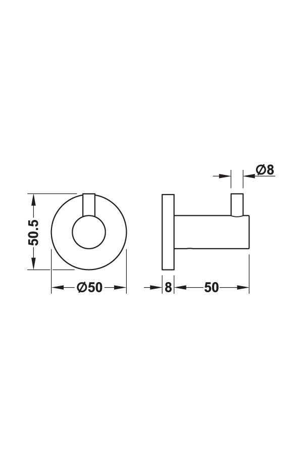| · · Formu : Yuvarlak · Üst Yüzey : Mat Siyah · Dış Genişlik : 50mm · Malzeme : Pirinç · Montaj Şekli : Yüzeye Montaj · Dış Yükseklik : 50,5mm |