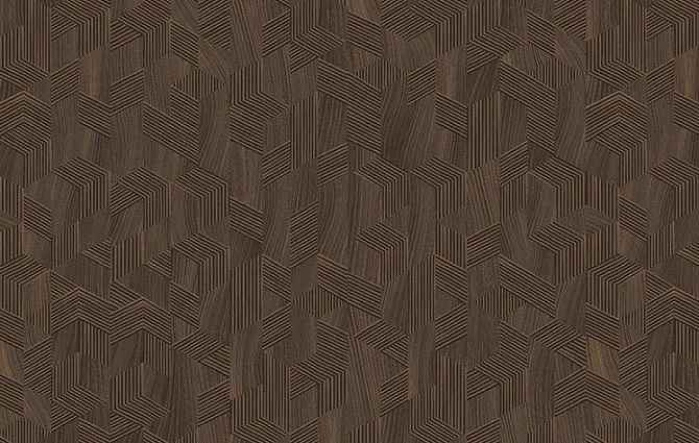 Doğal ahşap damarları geometrik çizgilerle bir araya getiren zengin bir desen.
