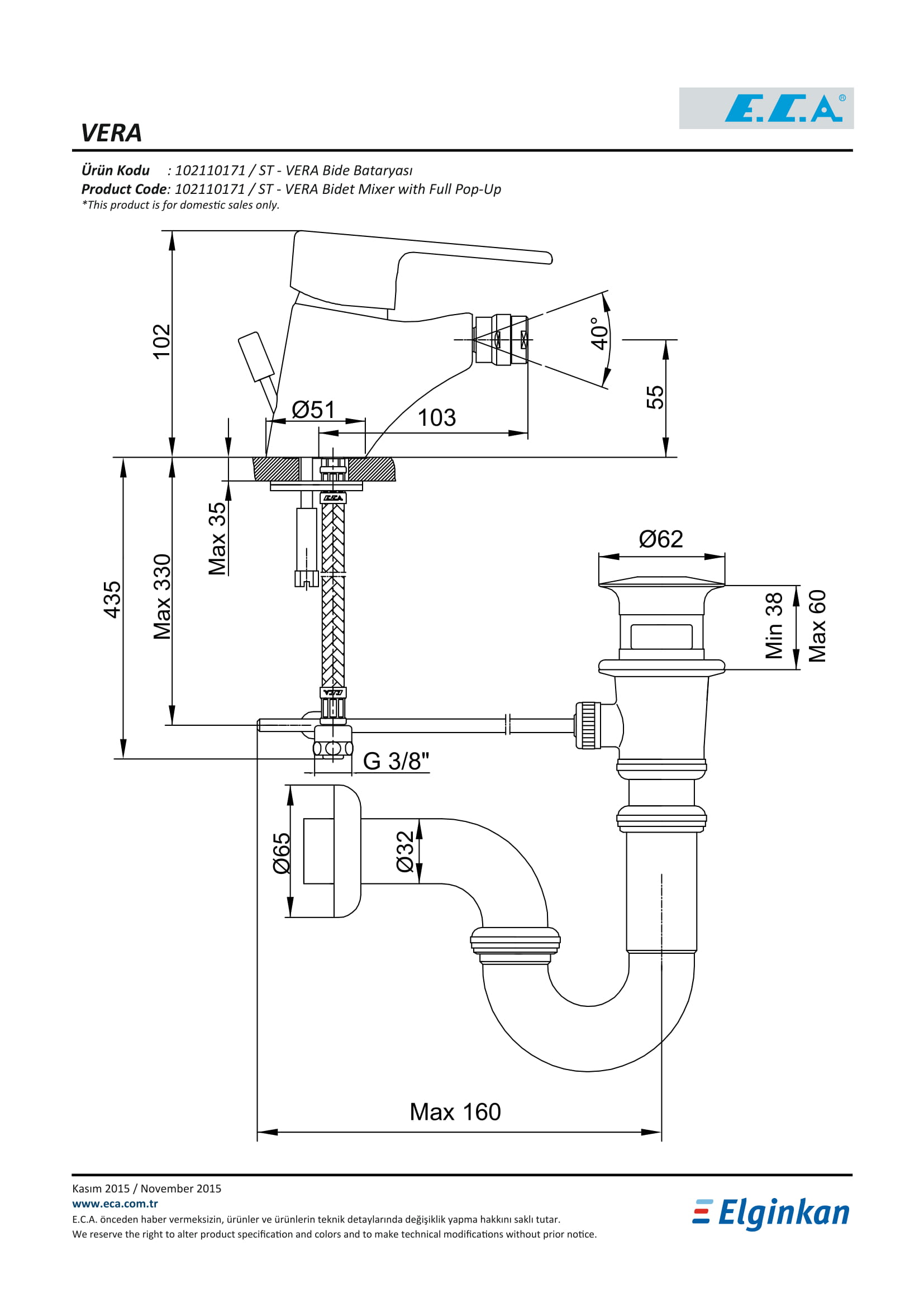 • Çıkış Ucu Yüksekliği : 55 MM