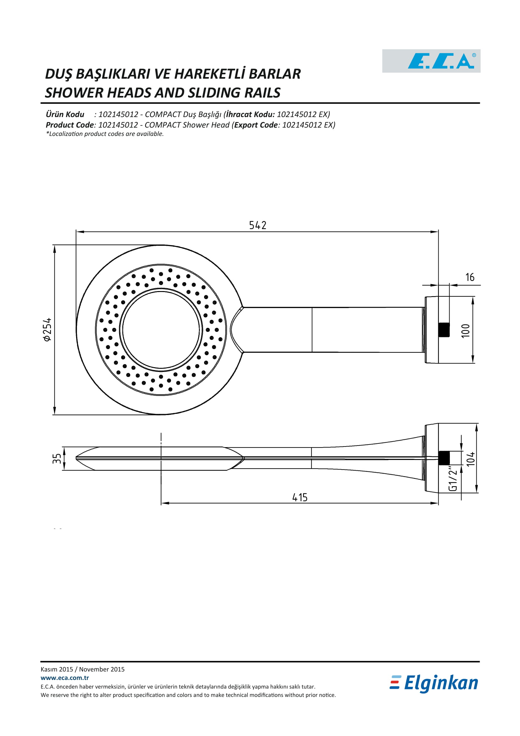 ECA Compact Duş Başlığı 102145012
